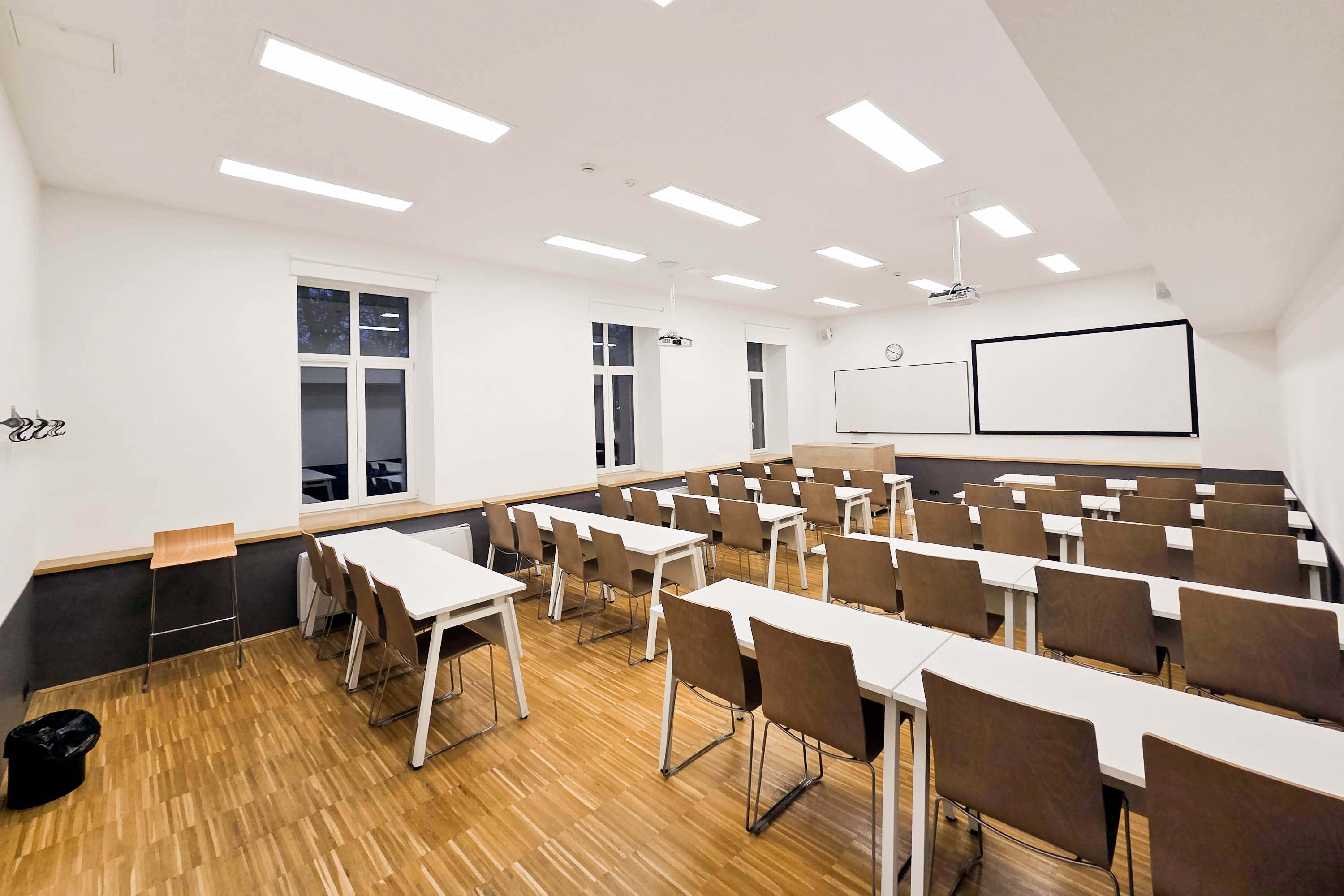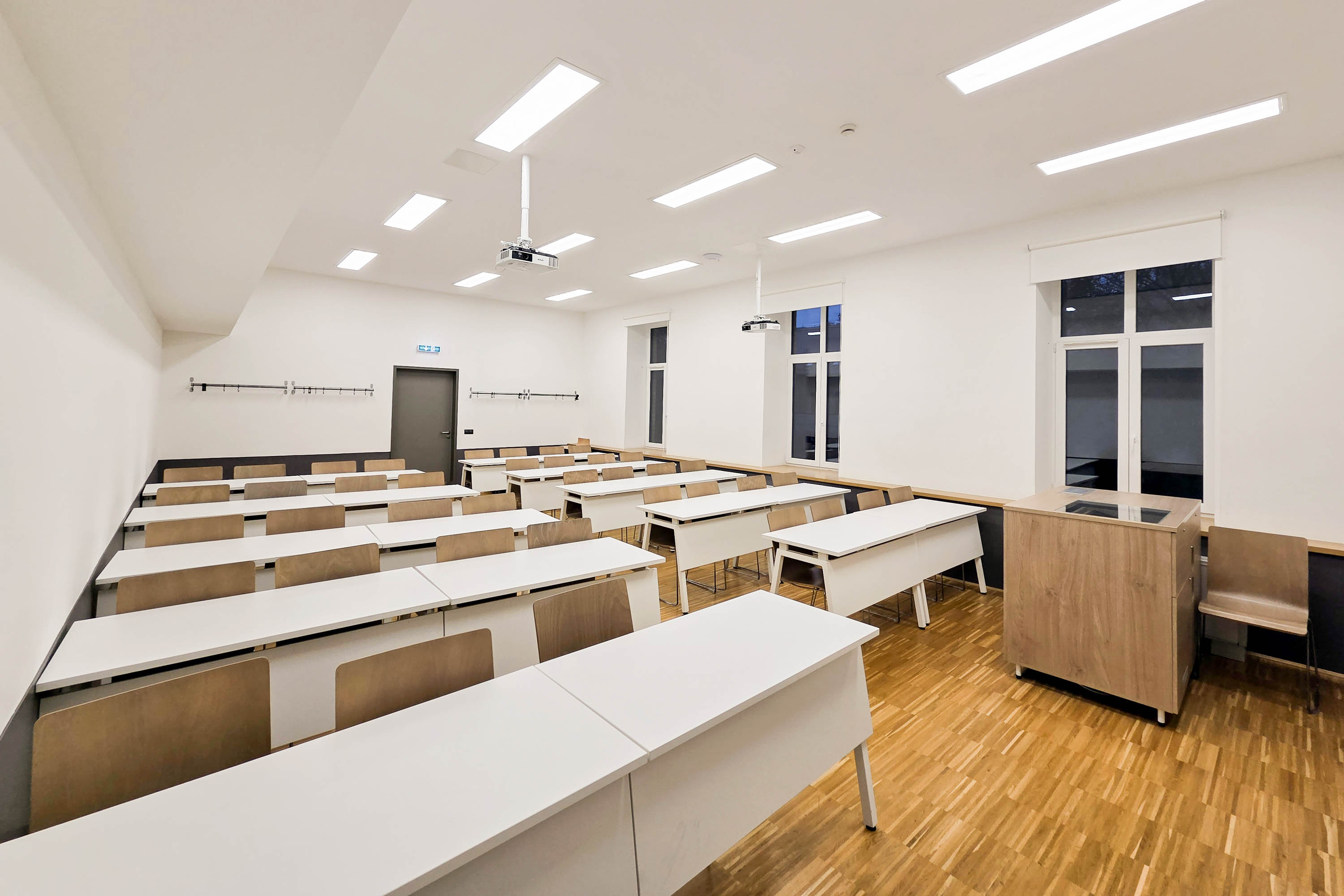 Budai úti oktatótermeink 20–60 fő számára biztosítanak kényelmes elhelyezést, és rugalmasan alakítható, mozgatható iskolapados berendezéssel rendelkeznek. Kiválóan megfelelnek kiscsoportos foglalkozások, nyelvi órák, tanfolyamok, szakképzések, valamint vitaestek vagy szekcióülések megtartására is.
