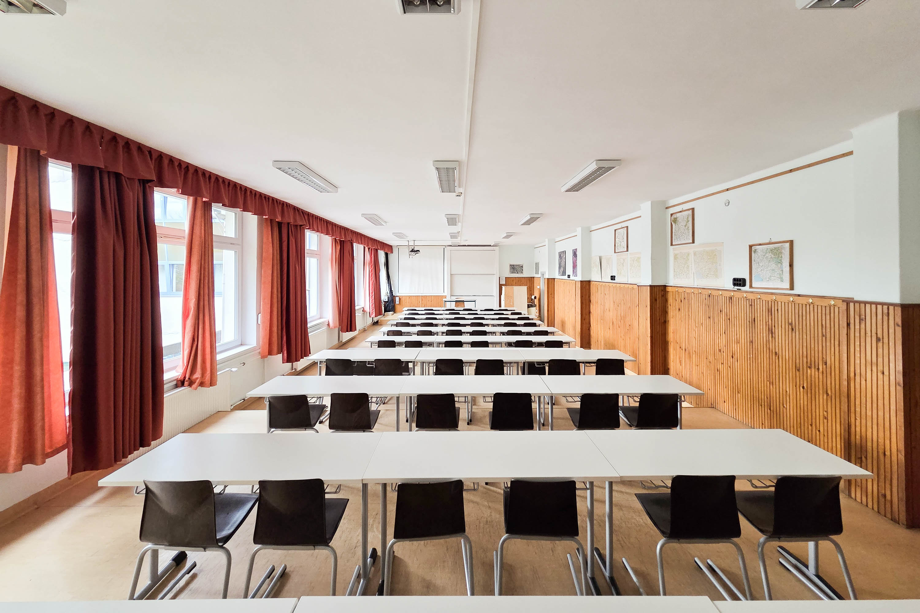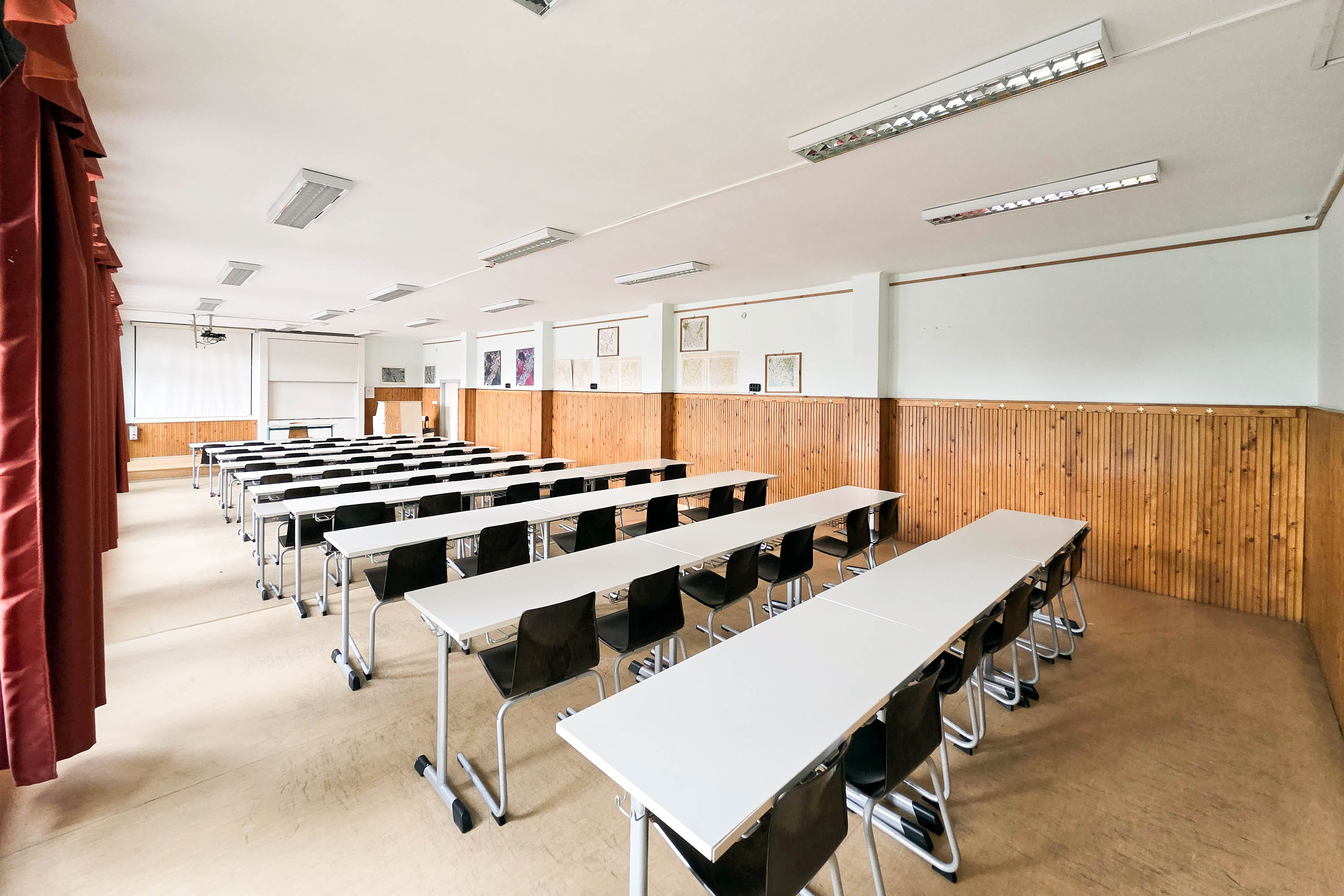 Pirosalma úti oktatótermeink 40–60 fő számára biztosítanak kényelmes elhelyezést, és rugalmasan alakítható, mozgatható iskolapados berendezéssel rendelkeznek. Kiválóan megfelelnek kiscsoportos foglalkozások, nyelvi órák, tanfolyamok, szakképzések, valamint vitaestek vagy szekcióülések megtartására is.