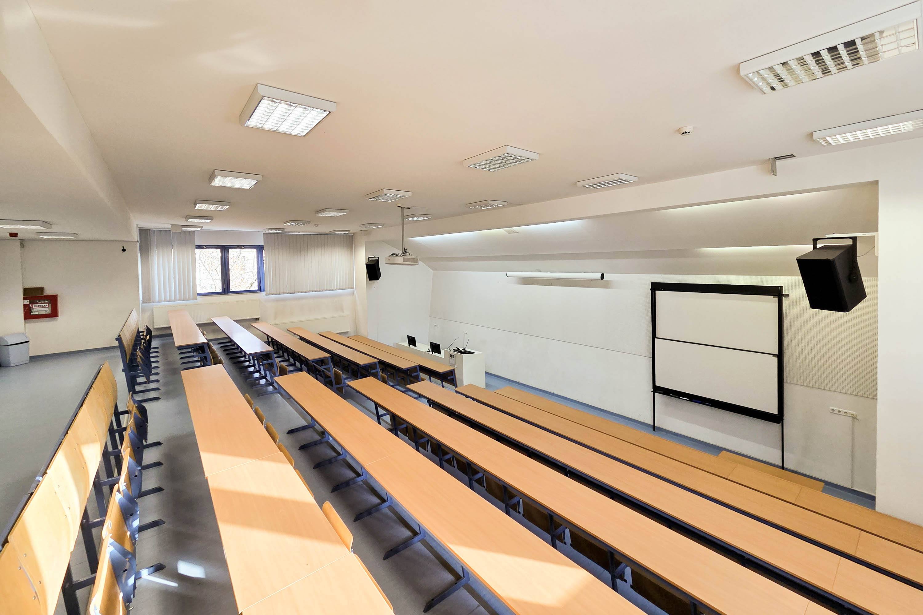 A Pirosalma úti kapmpuszunk első emeleti, 120 férőhelyes előadóterme ideális helyszínt kínál konferenciák, szakmai prezentációk, képzések, workshopok, vitaestek, valamint konferenciaszekciók lebonyolításához is.