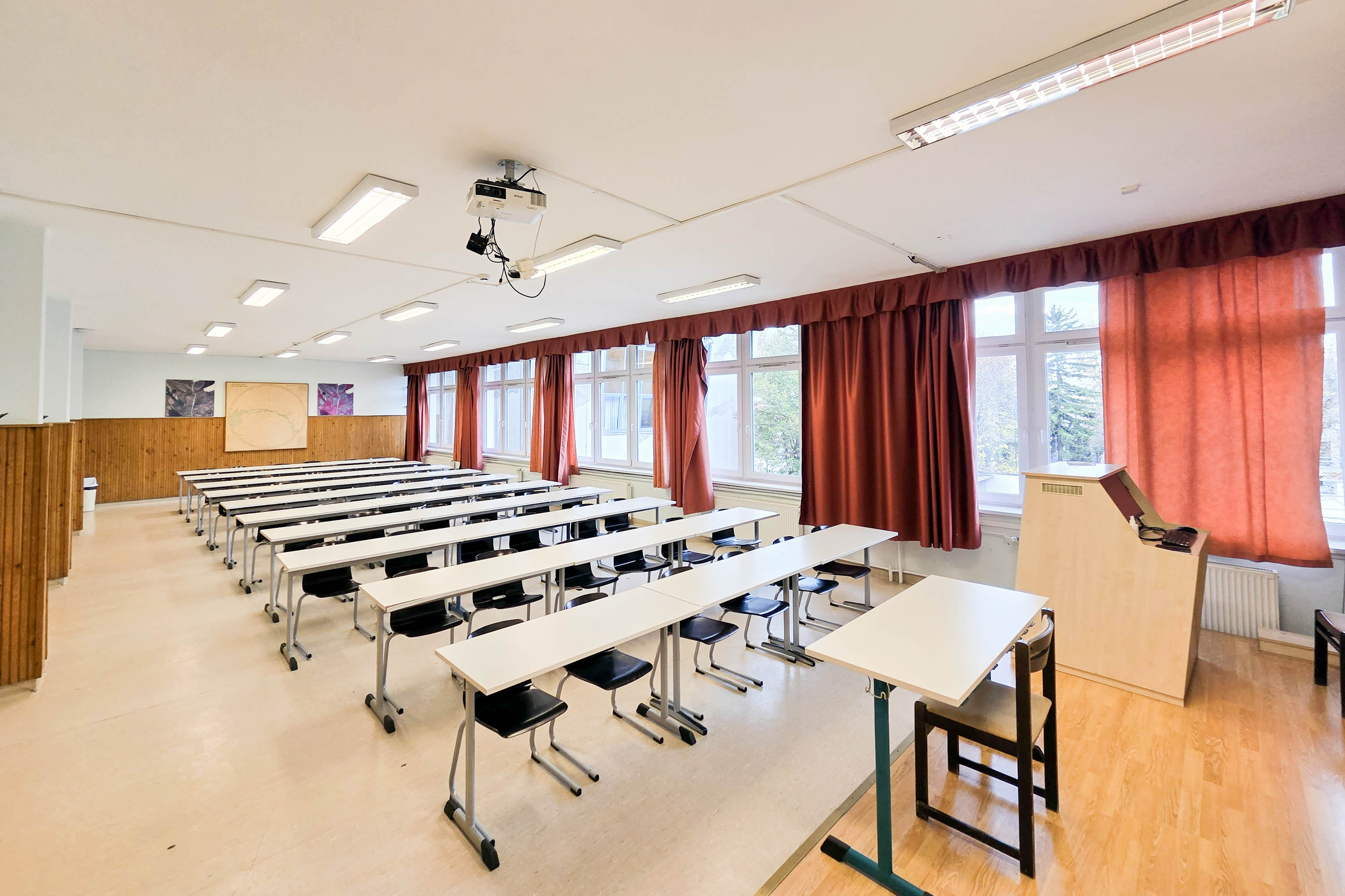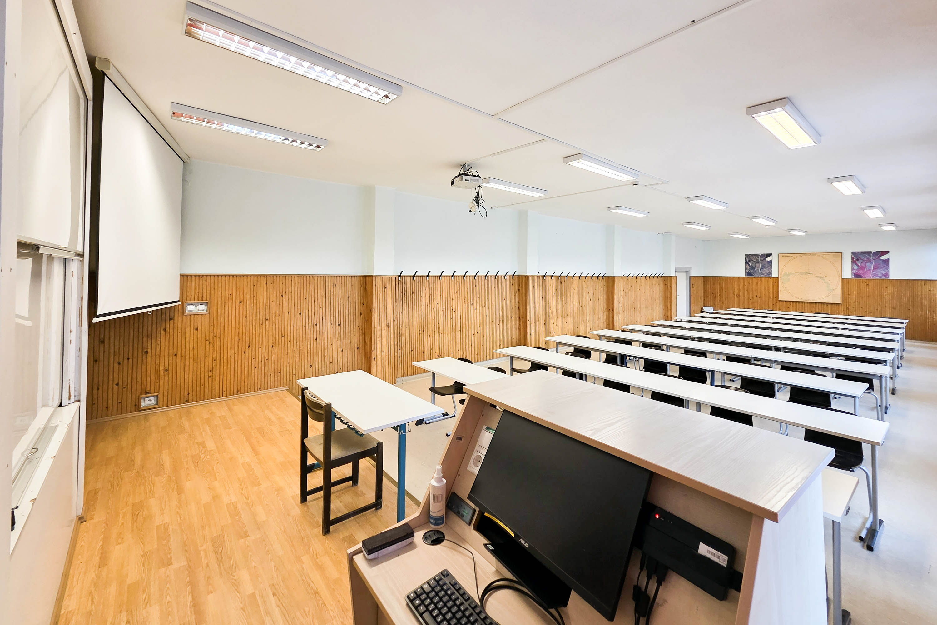 Pirosalma úti oktatótermeink 40–60 fő számára biztosítanak kényelmes elhelyezést, és rugalmasan alakítható, mozgatható iskolapados berendezéssel rendelkeznek. Kiválóan megfelelnek kiscsoportos foglalkozások, nyelvi órák, tanfolyamok, szakképzések, valamint vitaestek vagy szekcióülések megtartására is.