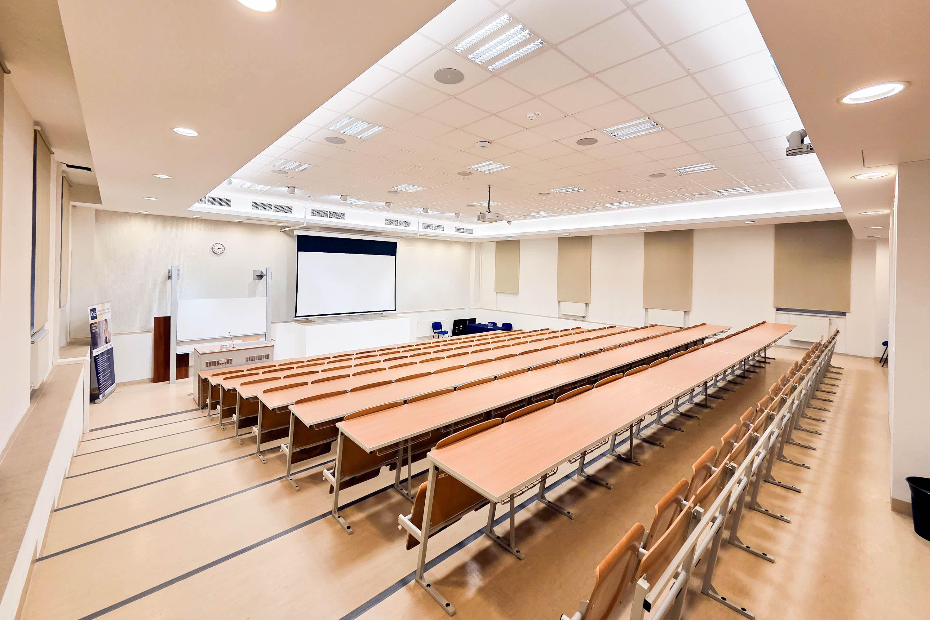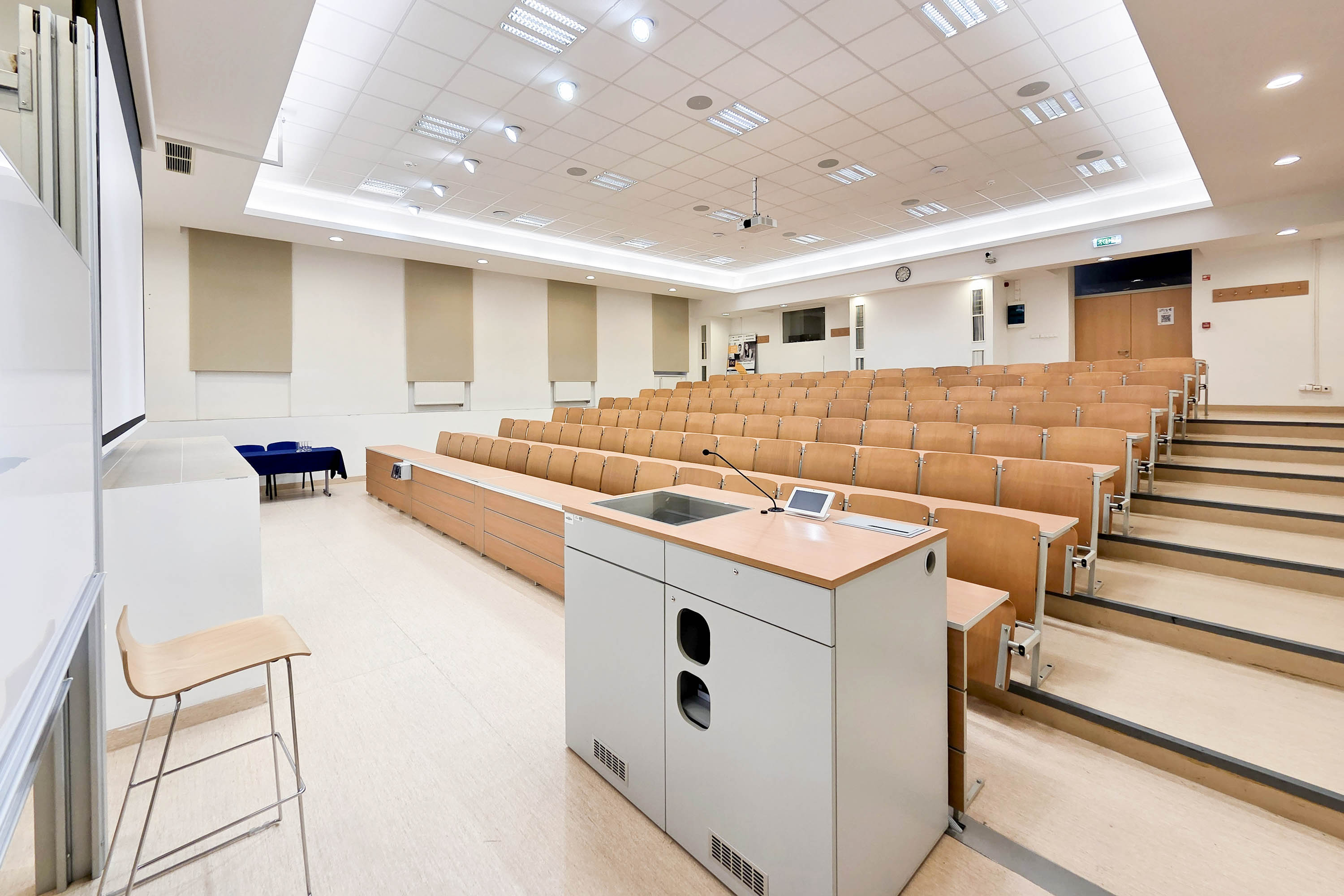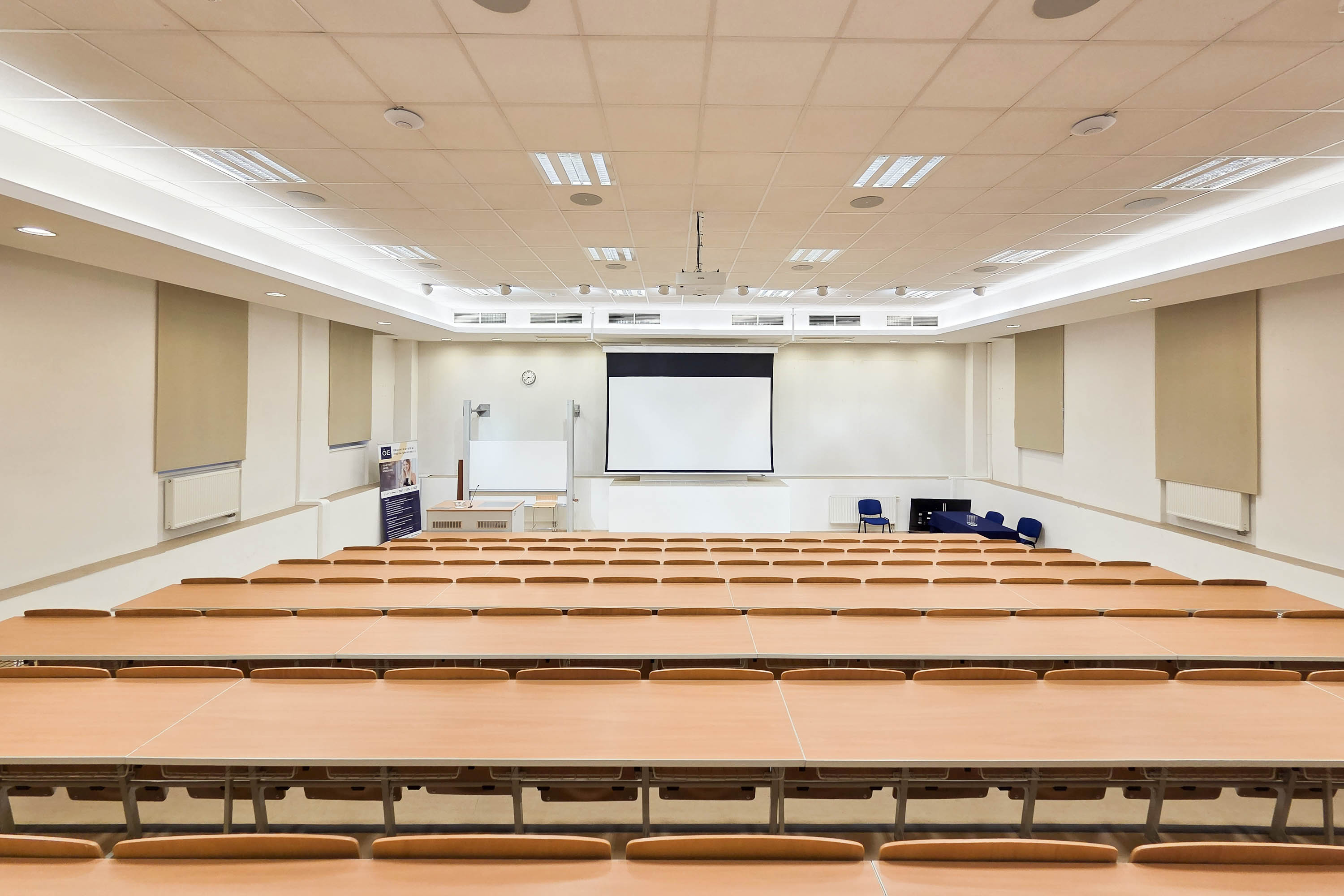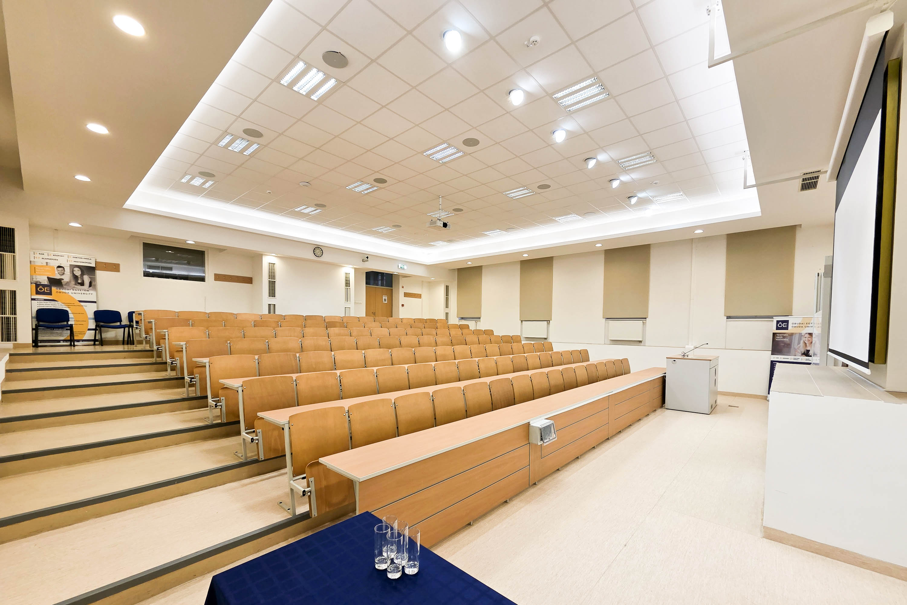 Az Óbudai Egyetem székesfehérvári, Budai út 43. szám alatti korszerű épületének 128 fős előadóterme ideális helyszínt kínál konferenciák, szakmai prezentációk, képzések, workshopok, vitaestek, valamint konferenciaszekciók lebonyolításához is.